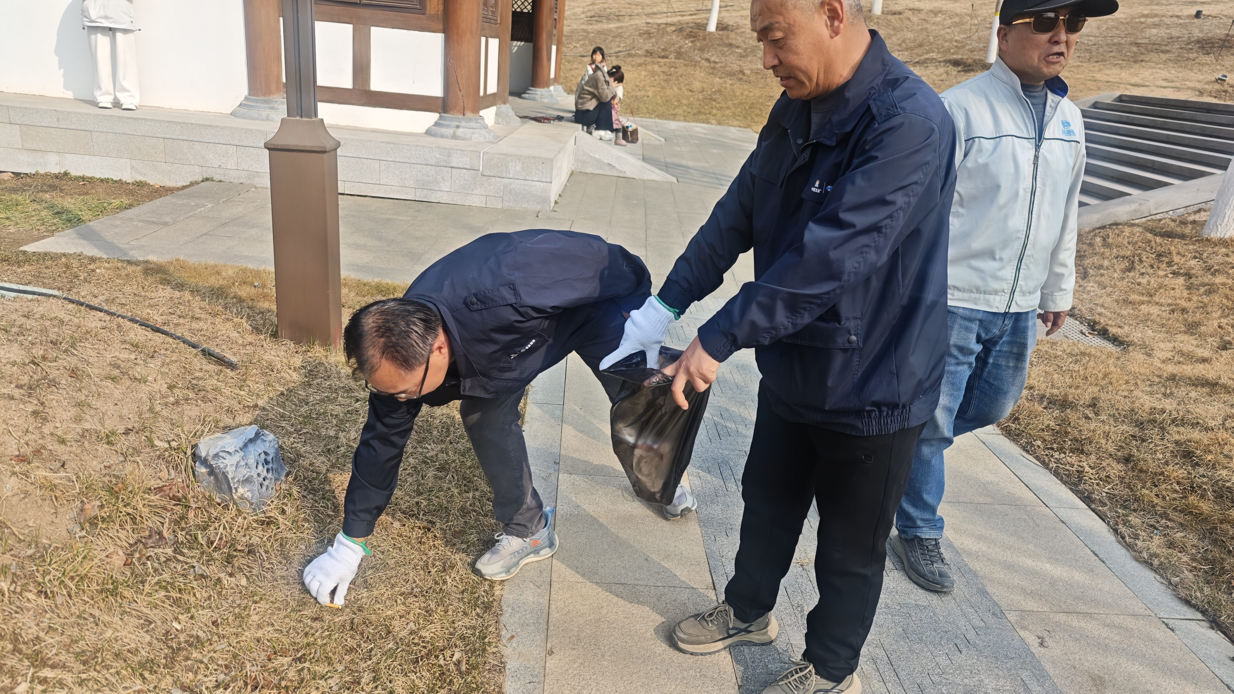 春风轻抚悦容公园的湖面,泛起粼粼细碎金光。活动现场,平日里手持图纸与仪器的工程师们,此刻俯身于草坪与步道之间,认真捡拾散落的水瓶、纸屑,并细心分类装袋。尽管手套沾满尘土,但他们的笑容却如旭日般灿烂。从建筑工地的“质量把关人”,转变为城市环境的“清洁守护者”,远达国际的员工们用实际行动诠释了责任与担当的深刻内涵。
